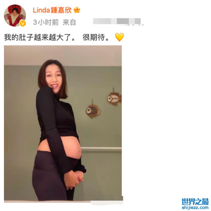 38岁钟嘉欣晒三胎大孕肚!穿紧身衣身材胖一圈,手捧孕肚胳膊粗壮 ...