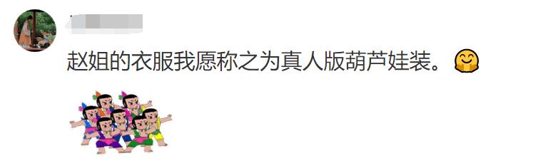 这或许在于,这种坎肩的造型是为了营造出人物的气势,但好像不太适合骨架娇小的赵丽颖,所以才被说是真人版葫芦娃,还有网友说这衣服就像是斗篷缝在了肩膀上。