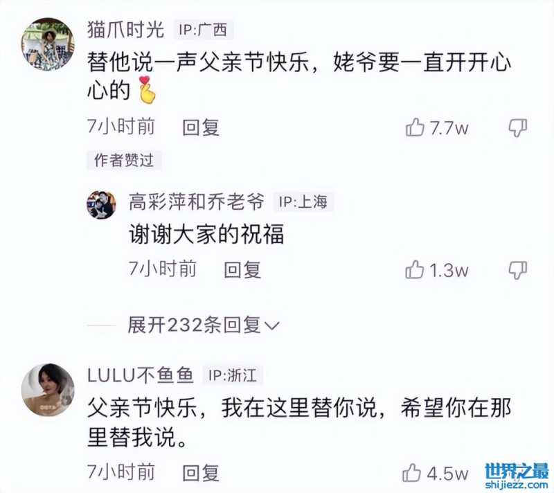 短短一个视频,乔爸收到了超过10多万粉丝们的点赞,大家给他留言:替他说一声父亲节快乐,姥爷要一直开开心心的。