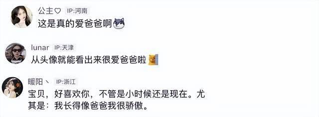 在看到这组照片之后,网友们纷纷评论佳润的头像一直是小沈阳,看得出来她非常爱爸爸。也有网友评论自己很喜欢佳润,不论是小时候还是现在,尤其忘不了佳润在小时候说的那句“我长得像爸爸我很骄傲”。