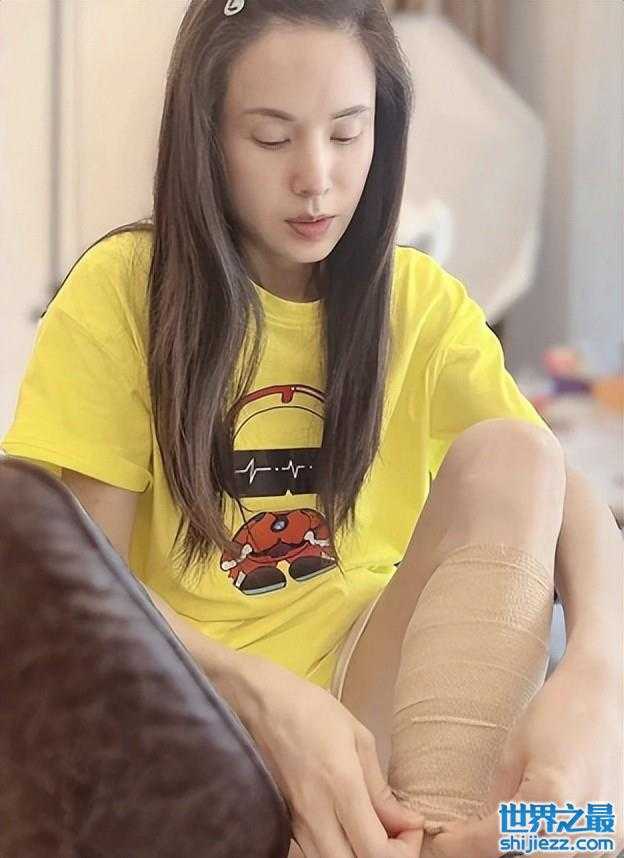 55岁李若彤小腿受伤!绷带缠绕一圈又一圈,双腿太细膝盖骨头突出 ...