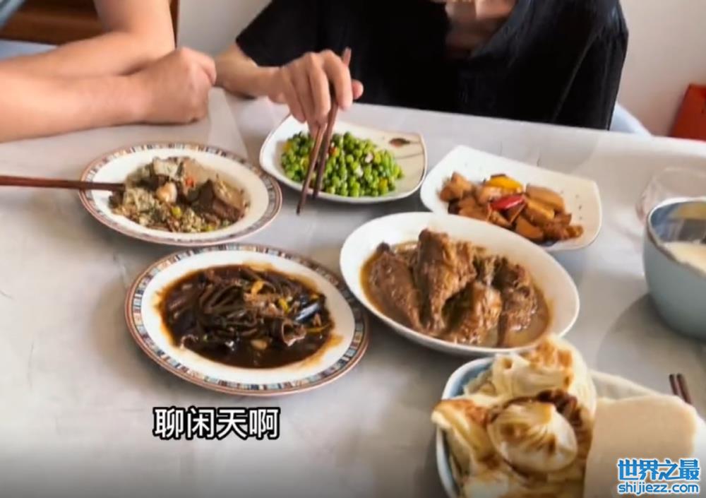 在介绍完自己做的菜之后,杨少华的儿子说了一句“今天父亲节,你就吃点剩的吧”。杨少华闻言有些不可思议,笑着反问到“我吃剩的?”。也不知道这是父子俩之间在逗趣,还是这桌菜真不是特意为杨少华做的。
