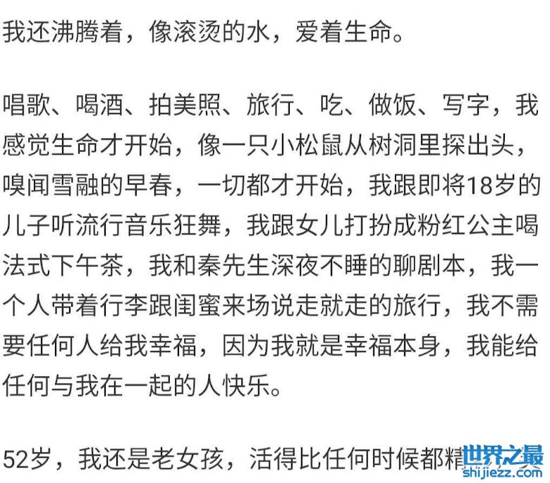 并且从文字中可以看到伊能静并没有把年龄的数字增长放在心上,每增长一岁,就发现生活还能够变得更好,不管多少岁伊能静依旧沸腾着,永远是一位女孩,越活越精彩。