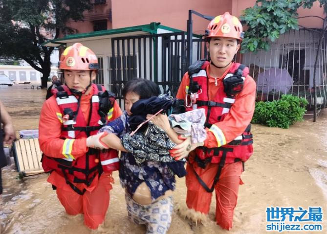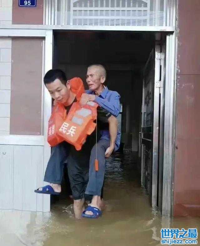 除此之外,Yamy还晒出了救援人员,从屋里背着老人出来的照片。可以看到,洪水已经快淹到救援人员的膝盖处,足见这场洪涝灾害的严重性。