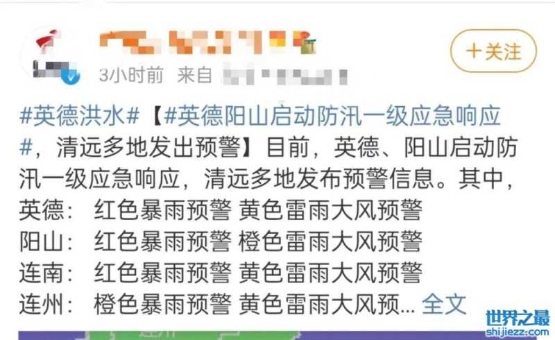 广东暴发严重洪涝,英德学校已停课,30岁知名女星发文愿平安 ...