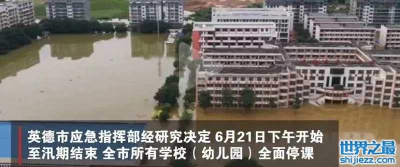 而据英德市应急指挥部研究决定,从6月21日下午开始至汛期结束,全市所有学校都将全面停课,当地各部门正在积极救援防汛中。