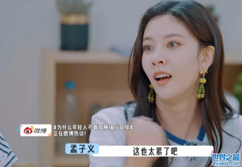 睡觉时,她要求单间,可是节目组没有提供。晚上有人在吹头发,她念叨:“以后绝不能让她这么晚吹头发了。”语气是严厉且命令式的。