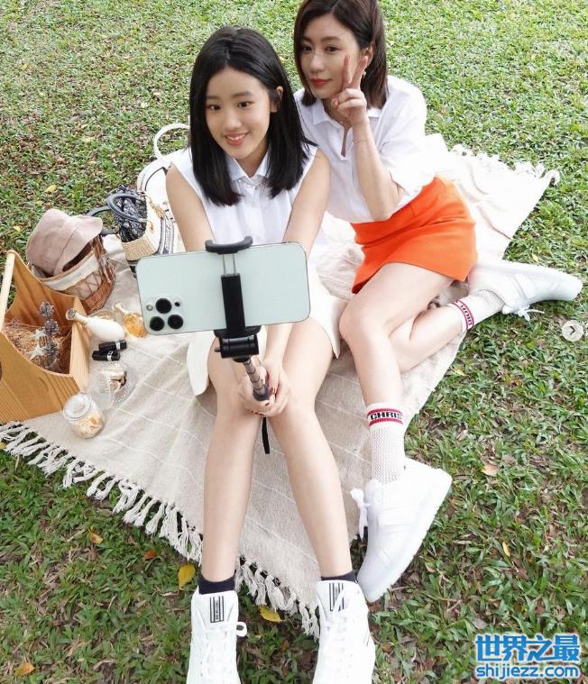 去年梧桐妹生日时,她还晒出小时候和妈妈的照片,母女俩复制粘贴般的五官,同款大眼睛,小小年纪就是个美人“预备役”。