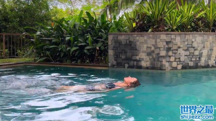 在此次的视频里,杨采钰还分享出了她平时在家游泳的视频,身着泳装的她惬意的泡在泳池中,整个躺在水中漂浮着,看起来非常放松。