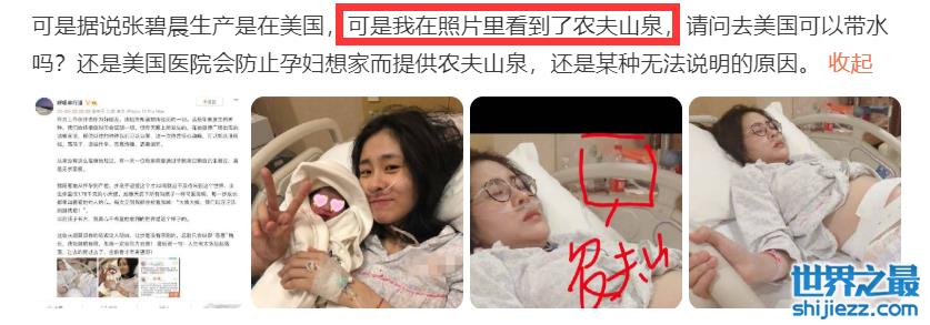 也正是这两张温情十足的照片让部分网友扒出了更多细节,首先从照片中可以看出,张碧晨所在的医院应该是国内医院,因为宝宝的襁褓上露出一个中文“院”子,此外,照片中还出现了国内知名品牌的矿泉水瓶,看来张碧晨国外独自生女的说法有待考证。