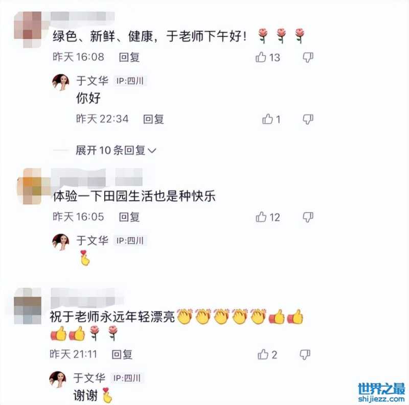 在看到这段视频后,网友们纷纷在评论区中向于文华问好,并表示体验田园生活也是一种快乐,还祝福于文华永远年轻漂亮。对于大家的评论于文华也贴心的回复,非常亲和。