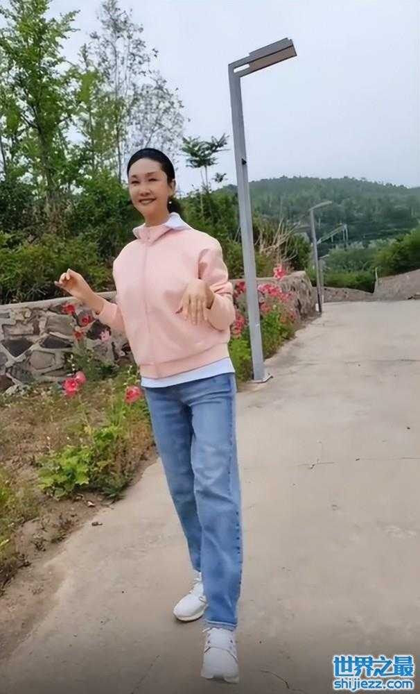 之后在摘完果子后,于文华走在乡间小路上开心地哼着歌跳着舞,状态看起来十分不错。于文华翘着腿,脸上挂着微笑,皮肤白皙身形纤瘦,一点不像57岁的人。而于文华所在的周围环境很好,沿路有些野花,远处还有群山起伏,清净幽雅。