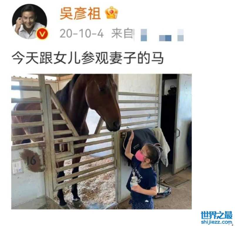 吴彦祖会经常在个人社交平台上晒出自己和女儿的活动。他带着女儿去参观妻子的马,照片中的吴斐然戴着粉色的口罩,扎着精致的麻花辫,抬手即将要抚上马儿的动作十分可爱。