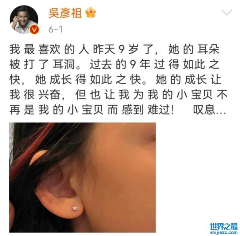 吴彦祖女儿吴斐然虽然年纪比较小,却是个爱美时尚的女孩,在前不久吴彦祖在个人社交平台上发文称女儿打了耳洞,在感叹女儿成长之快的同时也在叹息他不再是自己一个人的小宝贝了。