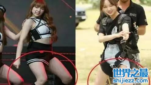 尤其是大腿,肉感十足,只看下半身的话,真的很难相信这是一个爱豆的大腿。
