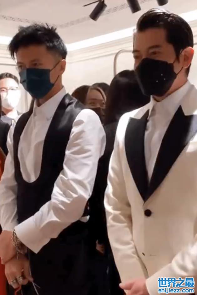 更令人激动的是,当天现身活动的还有郭富城和谢霆锋两位天王,他们戴着黑色口罩,穿着黑白色系的西服,双手交叠放在身前,在张曼玉打碟的时候跟随着节奏左右摇摆,神同步的画面与动作,让网友调侃他们好像张曼玉的两大护法。