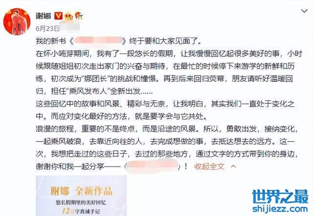 近日,谢娜在社交平台上晒出了自己将要出的一本新书,表示这本书是在怀女儿小咘芽期间想起了很多小时候的事,这些浪漫愉快的事就像旅程,而自己在这段空闲时间便将这些事记录了下来,编纂成了书籍。