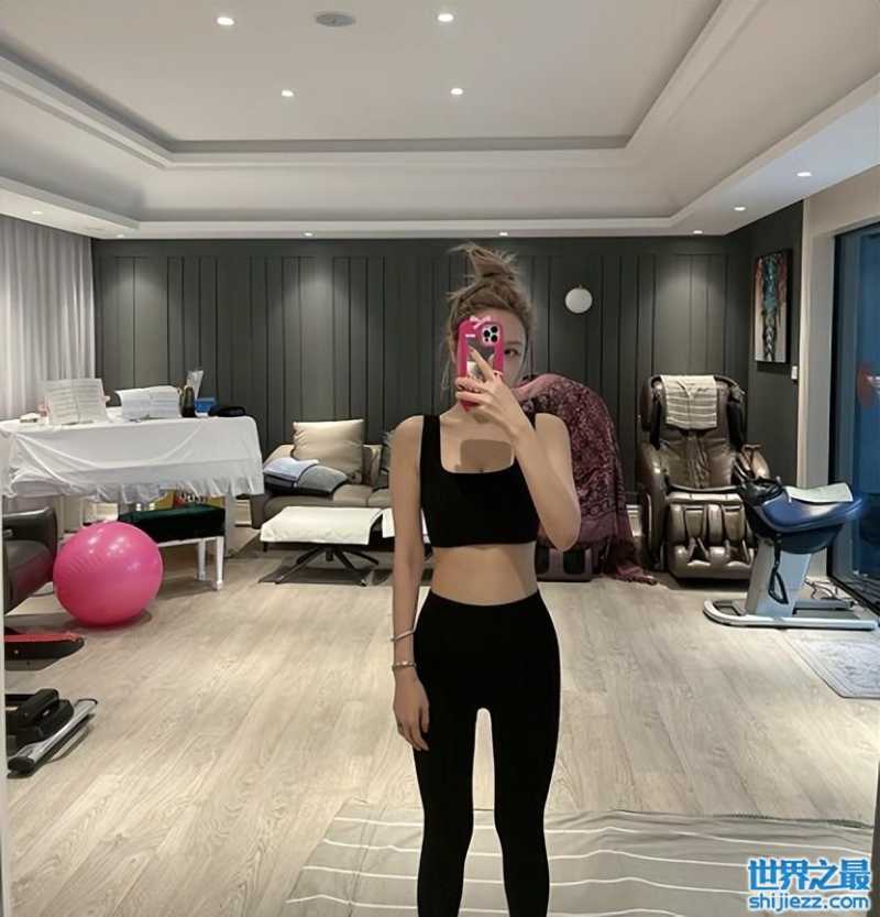 最后,周扬青晒出了自己在家中做运动的照片,画面中的她随意地将头发扎成丸子头,穿着黑色的吊带与紧身裤,露出纤细的腰腹部,而深厚的健身房中有瑜伽球,按摩椅等,装修也很精致。