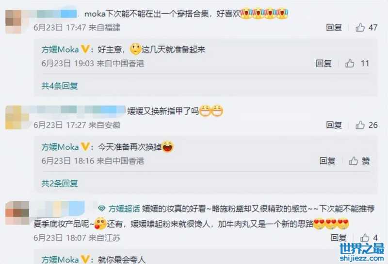 在网友们看到方媛晒出的这段视频后,纷纷发起评论。有网友表示希望方媛出一个穿搭合集,非常喜欢她的穿搭。也有网友发现方媛又换了新指甲,观察十分仔细。同时也有网友建议方媛出一期底妆分享,因为方媛的妆容看起来精致漂亮。而方媛对于大家的讨论也热心回复,十分亲和。