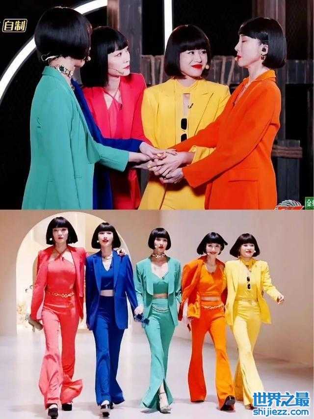 齐溪、张俪、王紫璇、朱洁静还有胡杏儿,被集体打扮成了“五颜六色的朵拉”,呆板的发型,被大家笑称:“感觉在看五个杜华……”