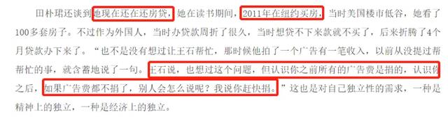 但问题就是,田朴珺明明依靠王石得到了这么多,却不肯承认,反倒总是执着于做一个高高在上的所谓独立女性——