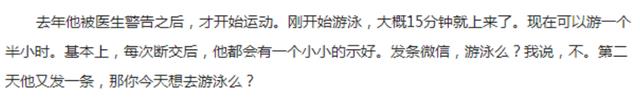 “基本上,每次断交后,他都会有一个小小的示好。发条微信问我,‘游泳吗?’,我说,不。第二天他又发一条,那你今天想去游泳吗?”