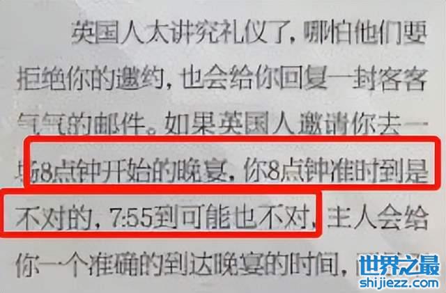 “英国人太讲究礼仪了,8点钟的晚宴,你8点到不对,7:55到也不对。”
