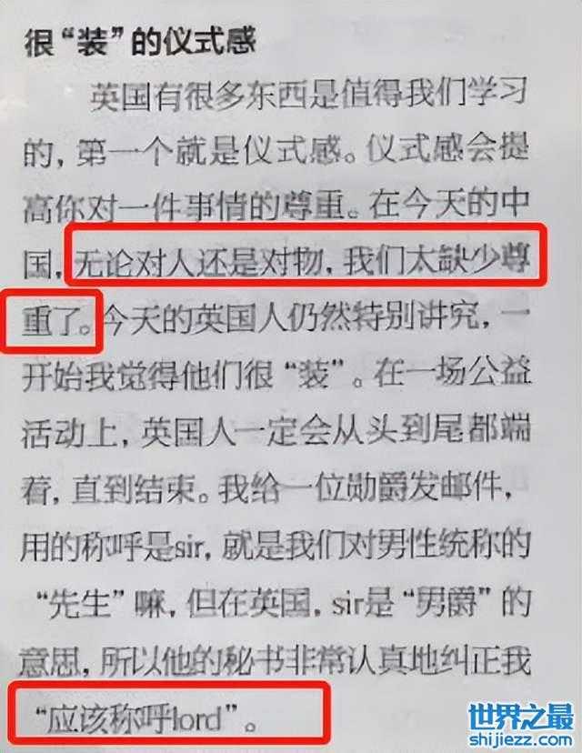 “中国人太缺少尊重了,我给一位勋爵发邮件,用的称呼是Sir,她的秘书非常认真地纠正我应该称呼Lord。”