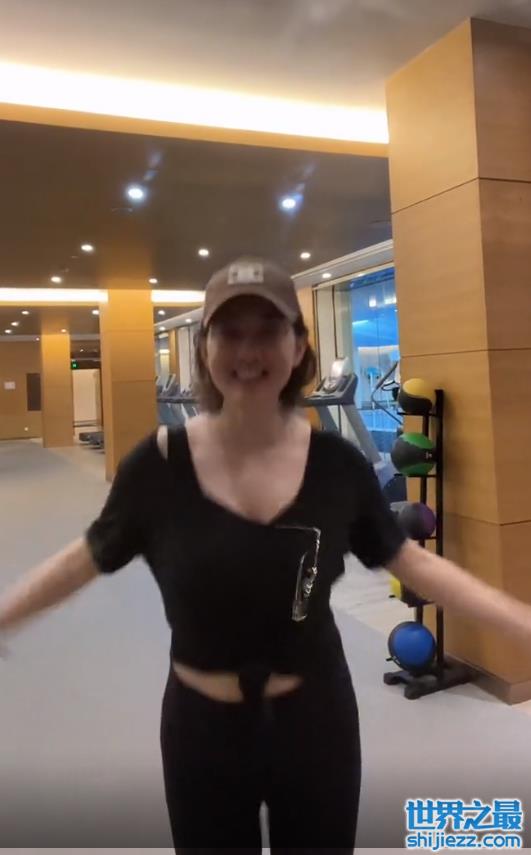 穿着紧身服的牛莉好身材尽显,尤其是一字肩的上衣更是大秀精致锁骨,露在外面的皮肤也是相当光滑白皙,身材和皮肤状态都非常不错。值得注意的是,牛莉身后摆着众多健身器材却没有其他人,一个人的健身房倒是可以尽情挥洒汗水。