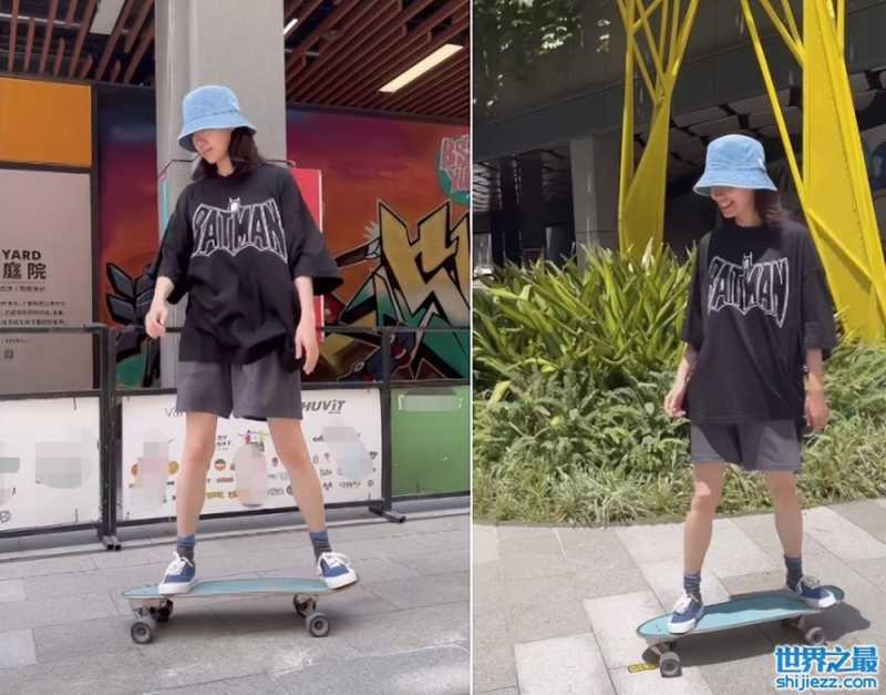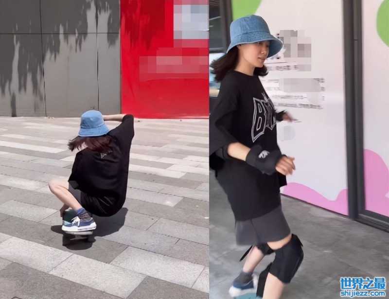 视频里,张小斐中性打扮,穿着宽松短,一双腿又长又直。为了避免被人认出,再加上烈日当头,张小斐特意戴了顶遮阳帽。在整个滑行中张小斐张弛有度,扭动着身体成熟的驾驭着滑板,眼神里也没有任何害怕,面对镜头自在从容。