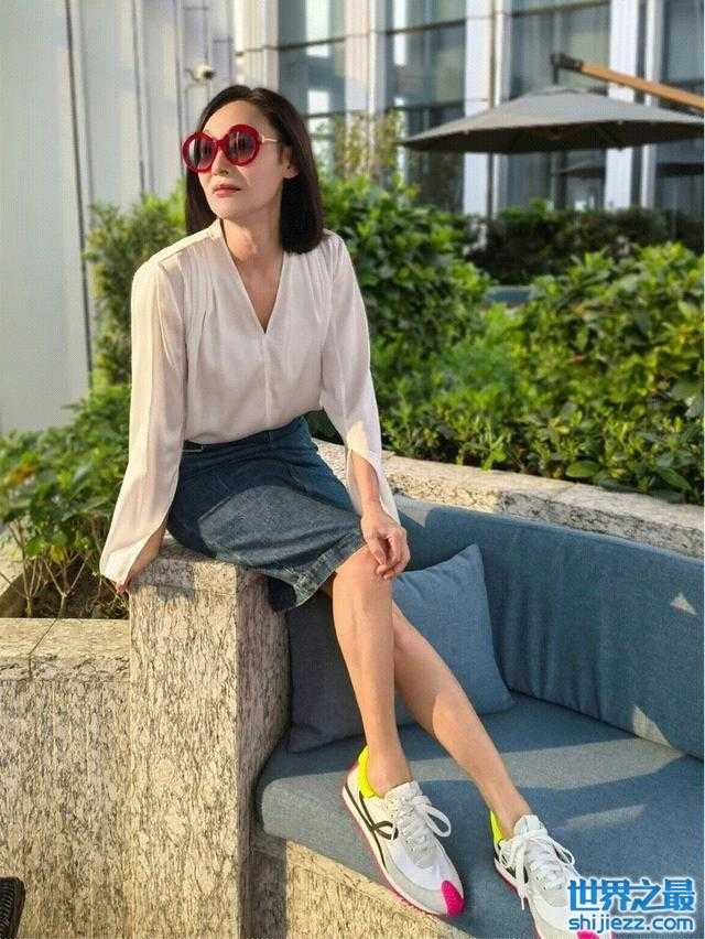每次都要再度感叹下,这身材和气色,哪里像是年过60的人?清爽高级感的丝绸白衬衫配休闲高街十足的牛仔半裙,脚上再来一双Loewe最近大火的撞色“阿甘鞋”,时髦得很轻巧。