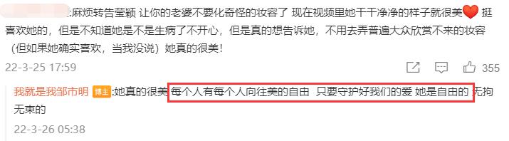顶着这张“脸”,冉莹颖坚持更新了大半年微博,丝毫不受底下评论的影响。