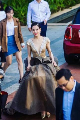 在参加某国际电影节时,更是大胆选择深V金灰色礼服,露出大片肌肤,尽显好气色。