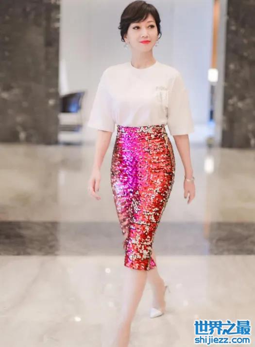 而当赵雅芝身穿亮面包臀裙时,就立马勾勒出完美的身材曲线,这纤纤细腰真的太绝了。