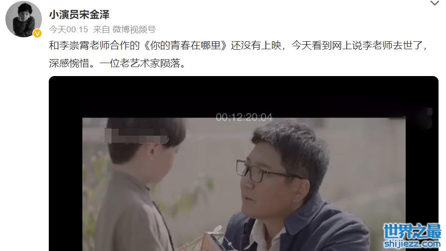 另外,李崇霄还有一部主演电影《你的青春在哪里》也没有上映,据悉这部戏2020年就已杀青,李崇霄在戏中饰演“索道之父”郭振东先生,剧中的小演员宋金泽悲痛哀悼,对李崇霄老师的去世感到惋惜。