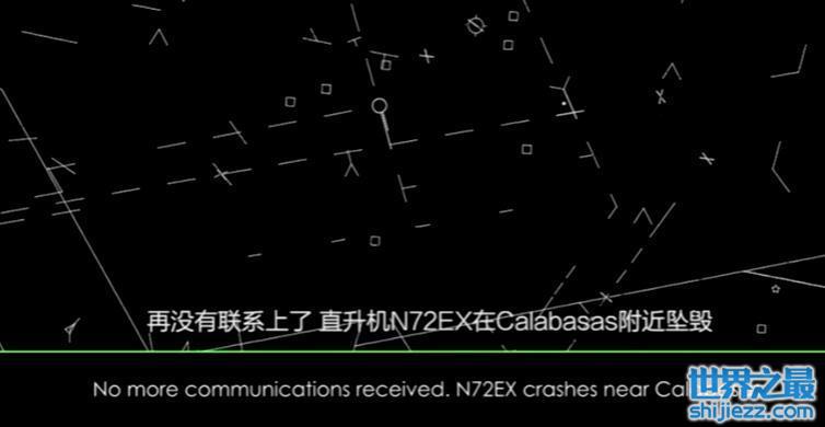 另外飞机N72EX是在calabasas的附近坠毁的,而坠毁的地段是属于两座山的间腰交界处。据猜测,飞机应该是在盲飞的过程之中撞到了山体,最终失事之后直接坠毁的。
