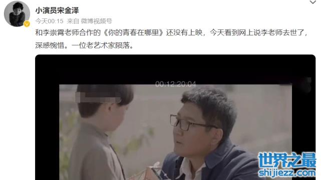 小演员宋金泽也发文送别李老师,两人合作的电影《你的青春在哪里》还没有上映,据悉,除了这部作品外,
