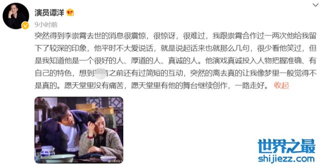 鉴于李崇霄老师生前拍摄了很多经典作品,他的猝然离去,自然让不少业内人士为之伤感与惋惜,很多与李崇霄老师合作过的演员也纷纷发文哀悼送别。