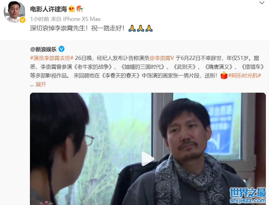51岁演员李崇霄不幸去世,李小冉潘婕刘金等合作艺人悲痛悼念 ...