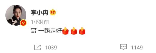 演员李小冉得知后,在账号中写下五个字“哥,一路走好”。