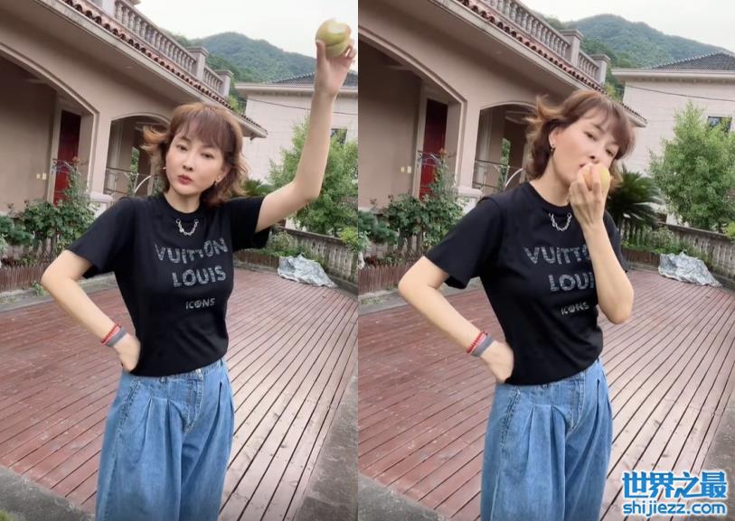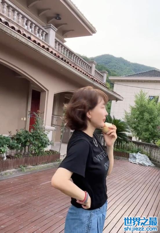 牛莉豪宅院子里跳舞,大口吃桃子十分豪迈,身上一件短袖近6千元 ...