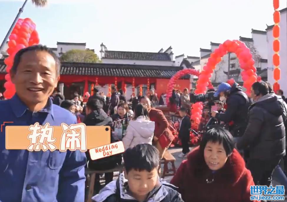 到了婚礼现场,热闹的气氛更足了。关于婚宴,剧组还原的是中国农村特有的露天坝坝宴,十里八村的乡亲邻居都齐聚一堂,现场起码摆了几十桌。大家围坐的也不是什么高级桌椅,就是农村最常见方桌、宽板凳,处处都很接地气。