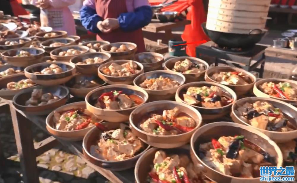 一旁就打着露天灶台,作为临时厨房。做席的厨师早就准备好了大菜、凉菜,鸡鸭鱼肉、凉菜蒸菜全都齐活,就等一开席,往每个桌子上上菜了。
