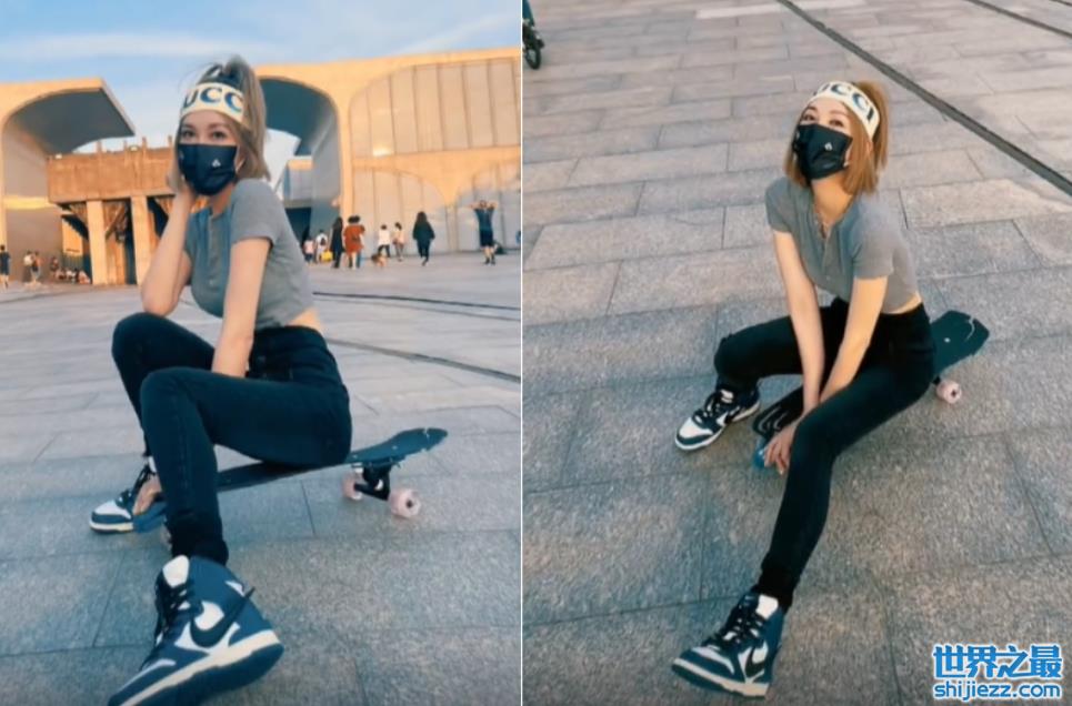 李彩桦穿超短上衣玩滑板,瘦太多裤头大一截,头上发带价格近3千 ...