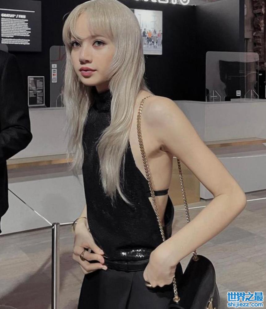 当日Lisa画着精致的妆容如同芭比娃娃一般,她身穿黑色无袖露背上衣搭配黑色短裙,金色的头发在全黑的造型中格外显眼,高挑纤细的身材和干练的模样,令粉丝们赞叹不已。