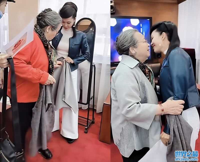 除此之外,于文华对待长辈也很亲和,这张照片中是于文华曾参加某次活动,画面中的李明启前辈年事已高,于文华亲切的给李明启穿上衣服动作温柔亲和。因为于文华高一些,在李明启向她说话时还弯下腰凑到李明启耳边,非常尊敬长辈。