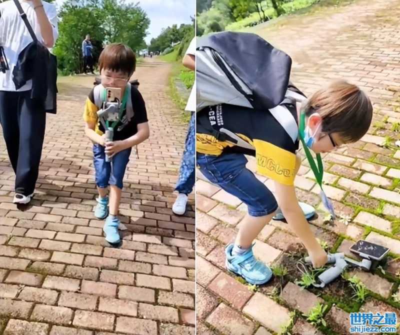 接着,小记者为于文华拍摄,只见他走在于文华前面,将手机架在稳定器上拍摄,眼睛认真地看向手机,还弯着腰找角度。小朋友边拍边跟于文华聊天,十分亲热活泼。当天天气晴朗,但看起来很热,在这样的环境下工作的于文华与小记者,实在是辛苦。
