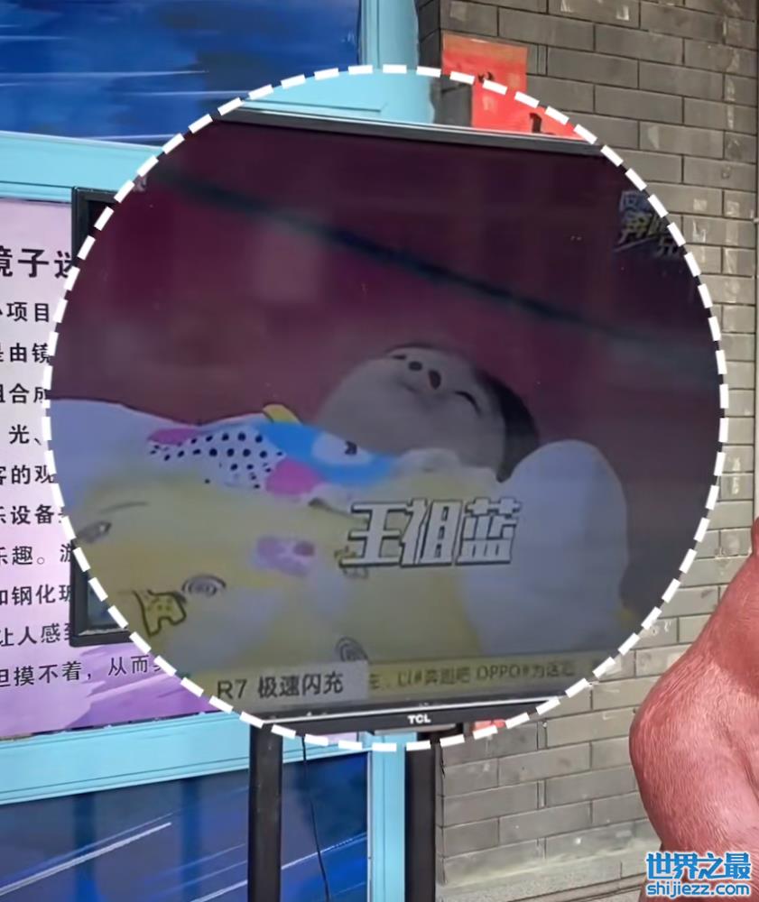 镜头一转,原来是路边的电视上面正在播放《奔跑吧兄弟》之中的画面,刚好播放到王祖蓝被淘汰之后倒地,心疼爸爸的gabby见此情景就直接大哭起来,怎么哄也哄不住。