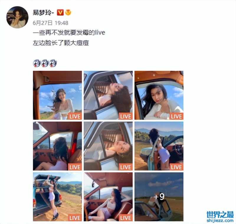 近日,千万粉丝级的网红易梦玲在自己的社交账号上晒出一组车内性感写真。照片里的易梦玲穿着露背大领口短上衣,搭配紧身超短裙,摆出了多种撩人姿势与车合拍,这也引来无数粉丝疯狂向其表白。