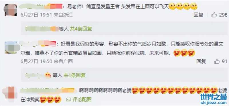 评论区的粉丝也是花样百出,对易梦玲的表白词汇非常多样。有的粉丝形容易梦玲为发量王者,头发被风吹起来似乎也可以将易梦玲带飞上天,有的粉丝表白词汇就非常文雅丰富,而更多的是词穷得只能喊出一句老婆。